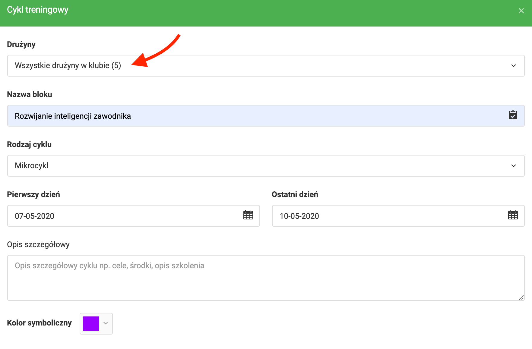 Pamiętaj, że w jednym czasie możesz zaplanować kilka różnych bloków treningowych dla różnych drużyn.
